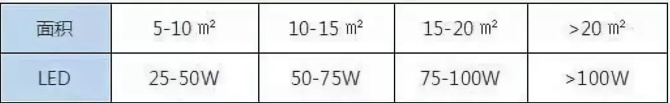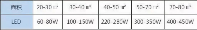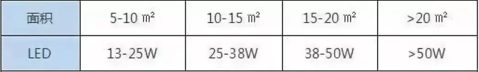 不同面積所需要的燈具瓦數不同,同時還要根據我們對燈光的需求做出相應的調整。