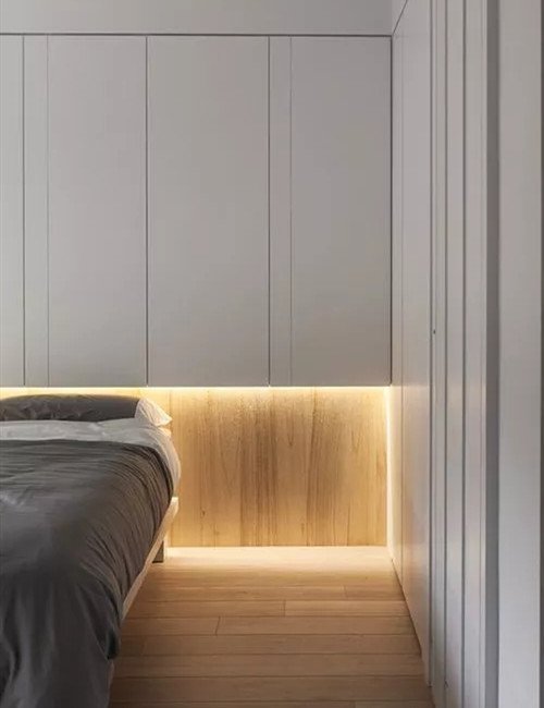 有起夜習慣時,可以在床底、櫃底加裝一圈見光不見燈的燈帶,這樣既能夠照亮地面,又不會讓伴侶在睡眠中遭受強光刺激。