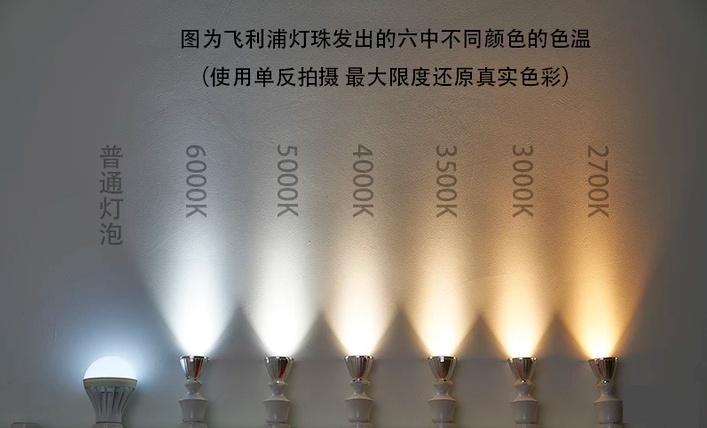 色溫也是挑選燈泡的重要參考數據,仔細觀察上圖,我們可以發現色溫超過5700K顏色就開始偏藍了,用這種色溫的燈泡照明,就容易給人室內一片冷清的感覺。